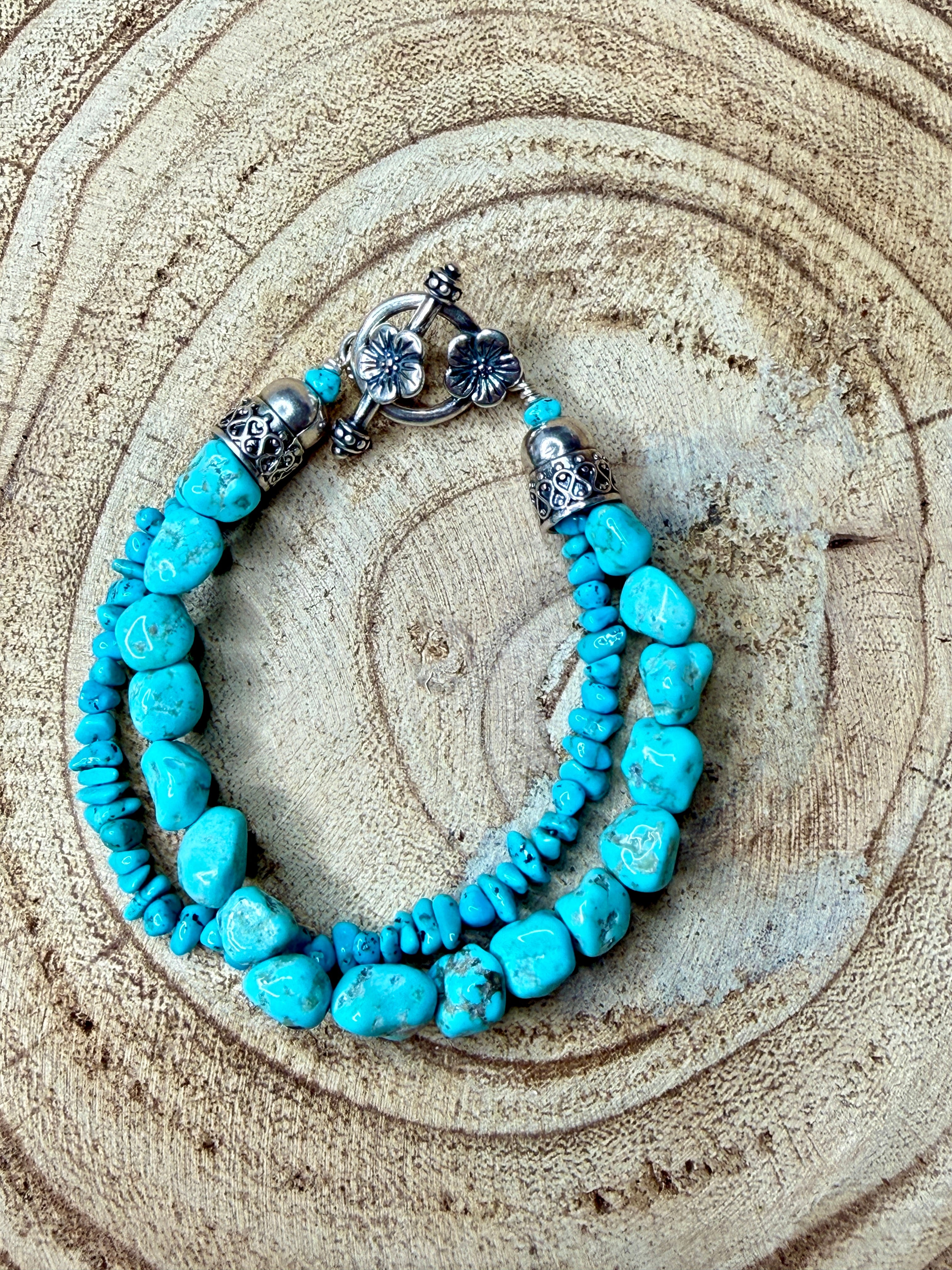 Two Strand Turquoise Bracelet with Toggle Clasp