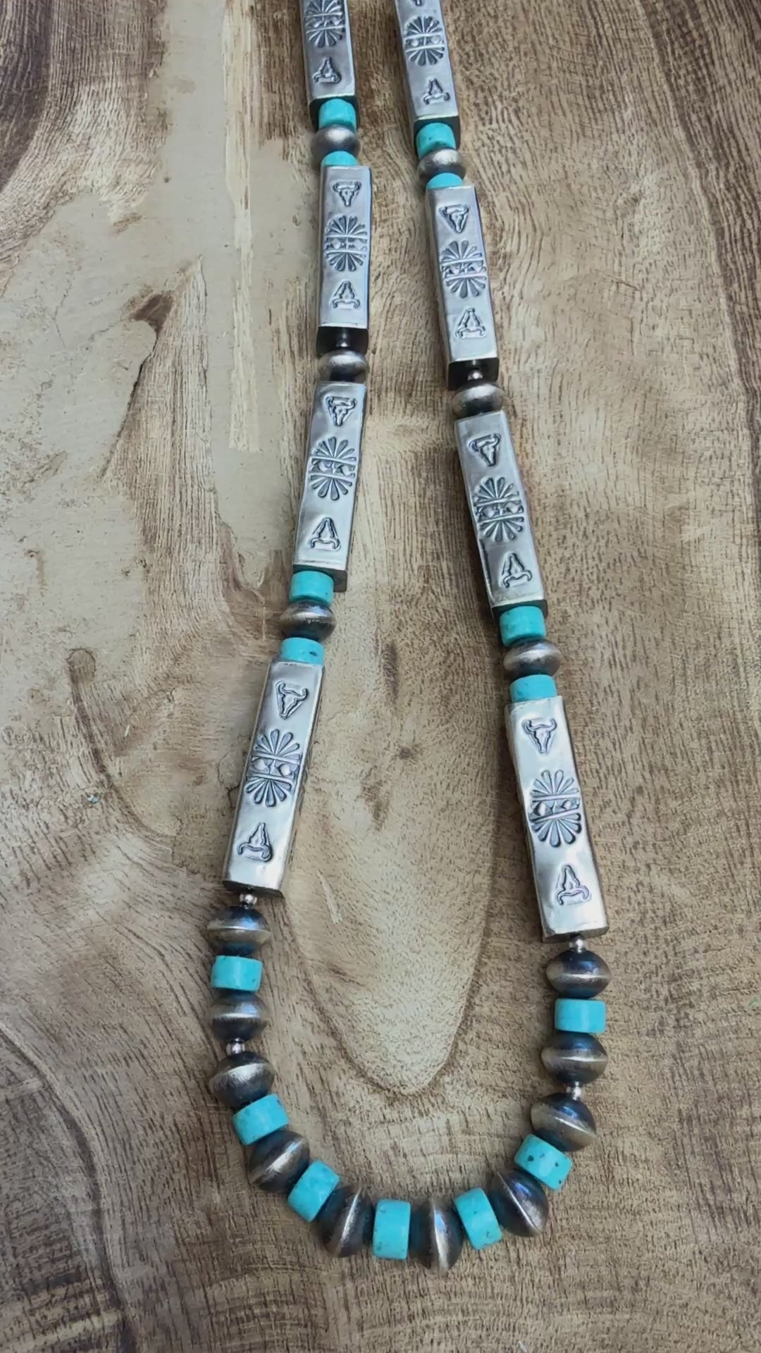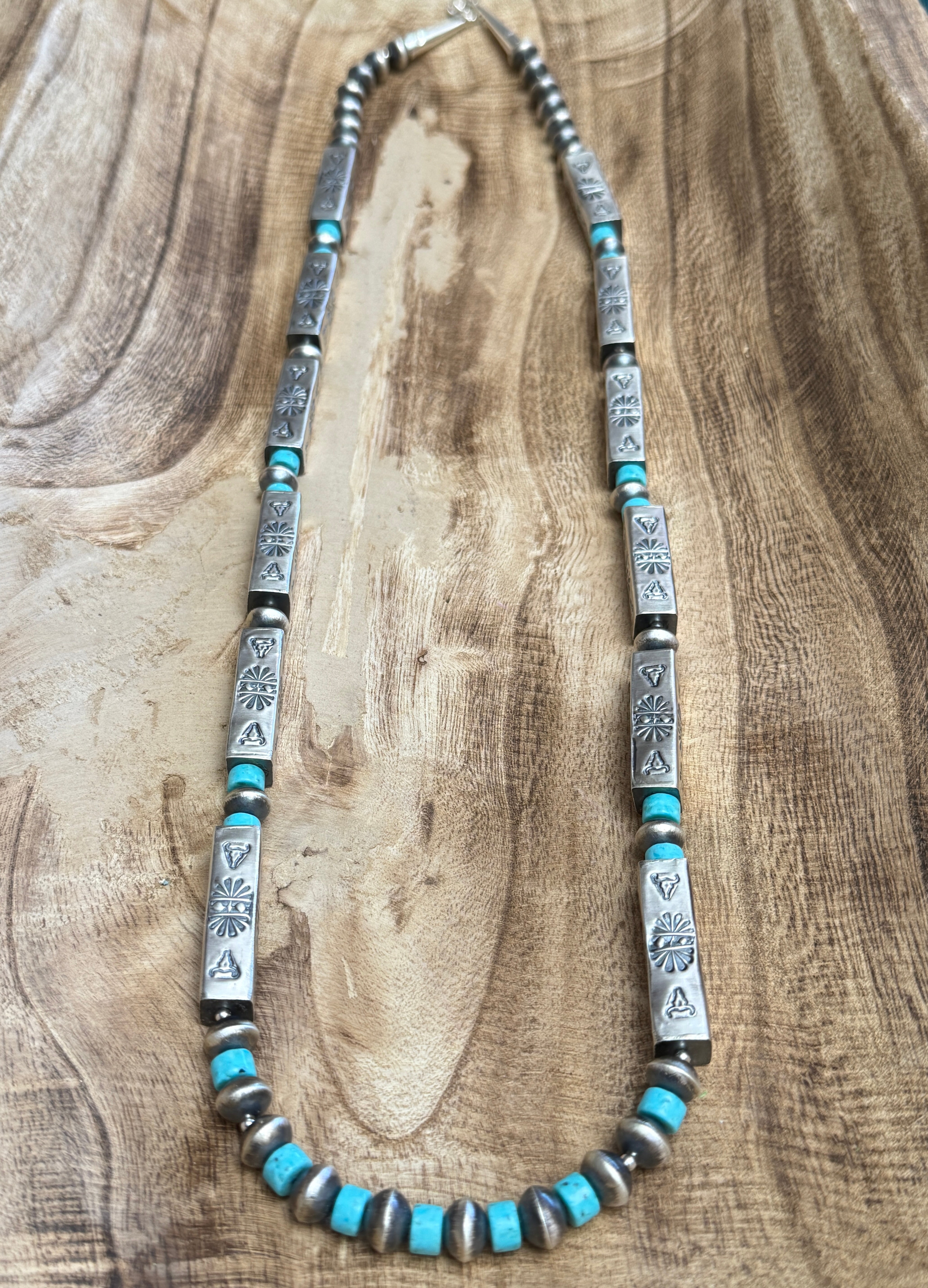 Sophia Becenti Turquoise and Sterling Silver Rectangle Bead Necklace