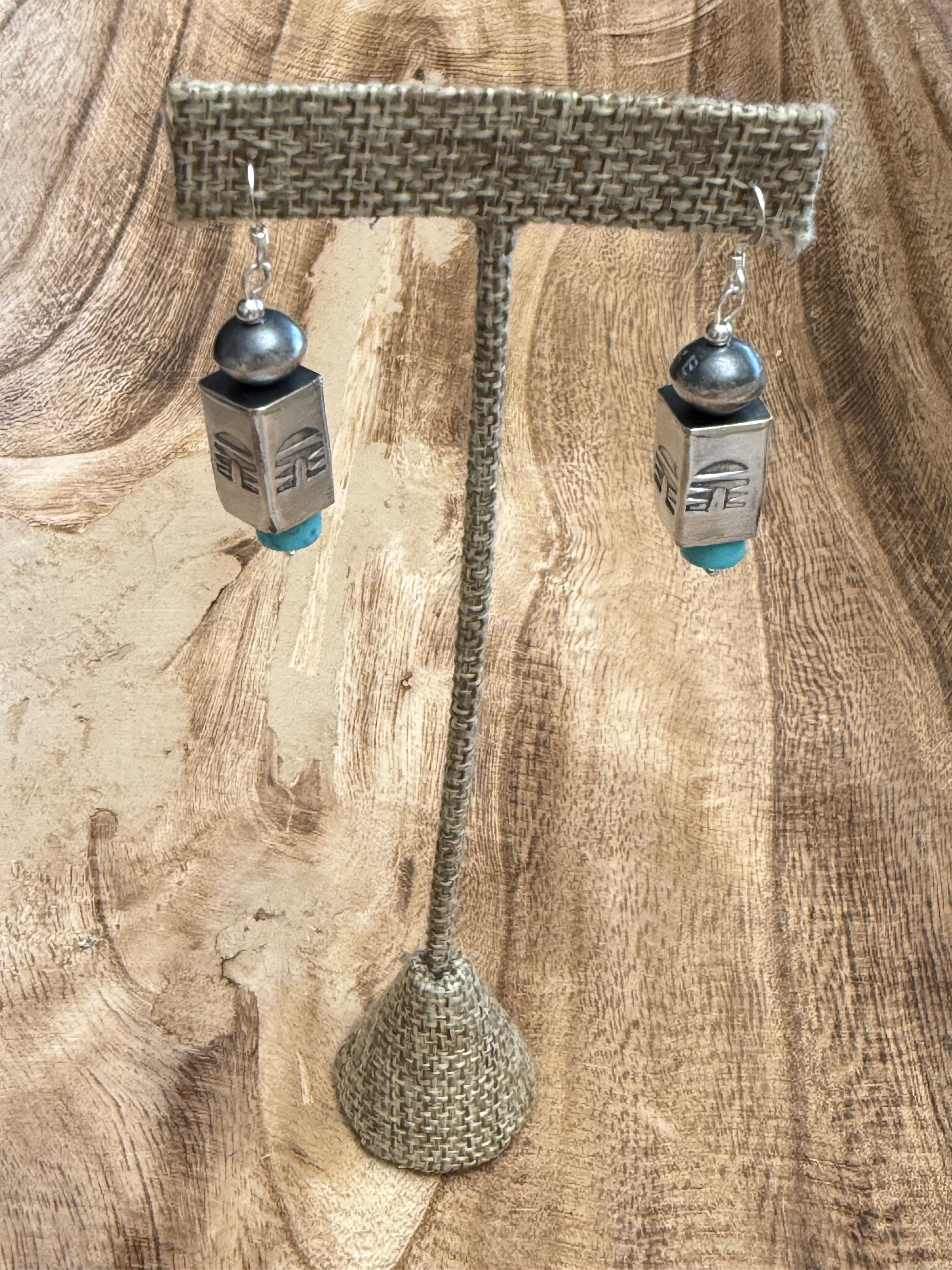 Sophia Becenti Rectangle Bead with Turquoise Earrings