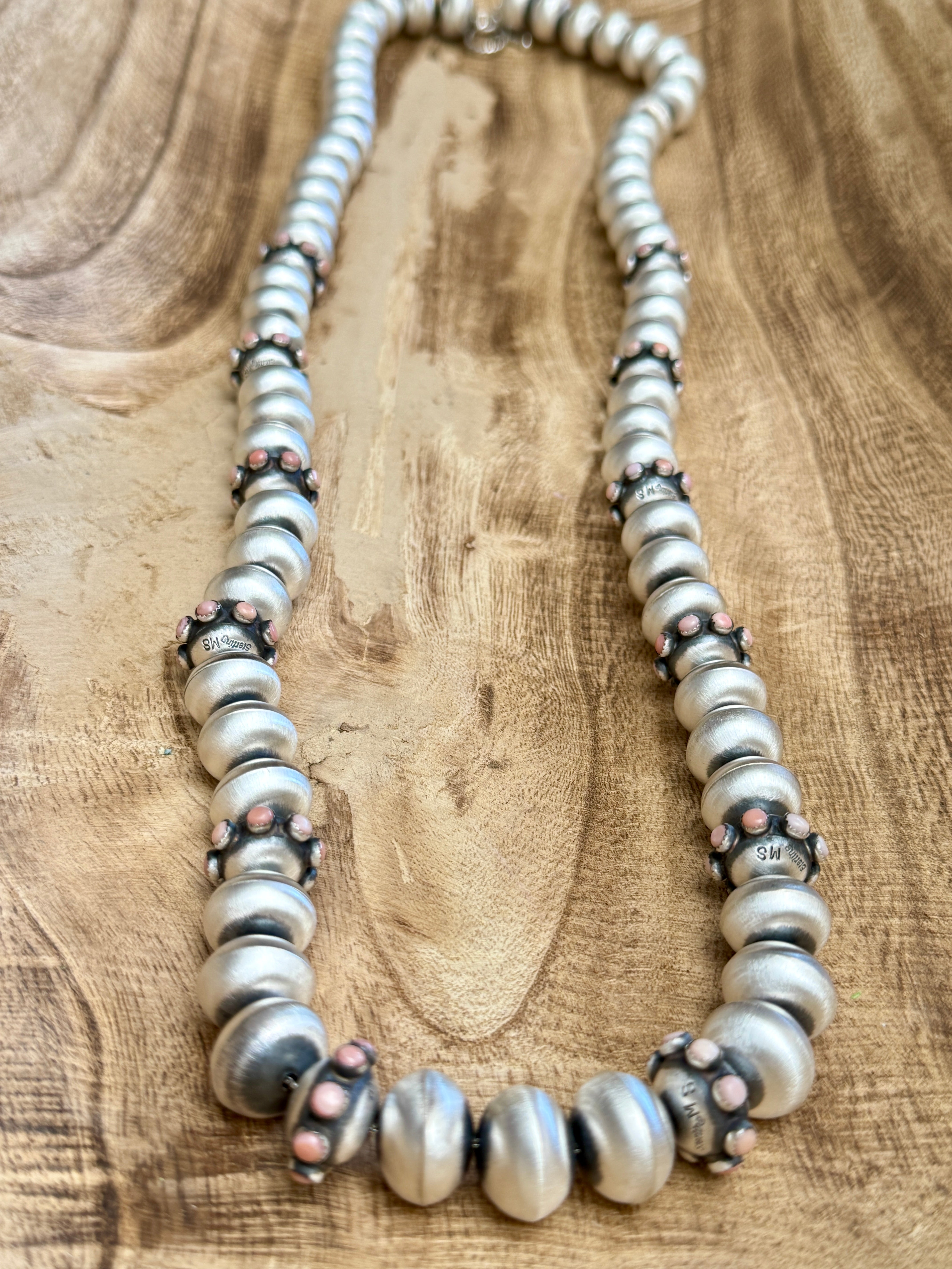 Monica Smith 36" Sterling Silver Pearls with Pink Conch