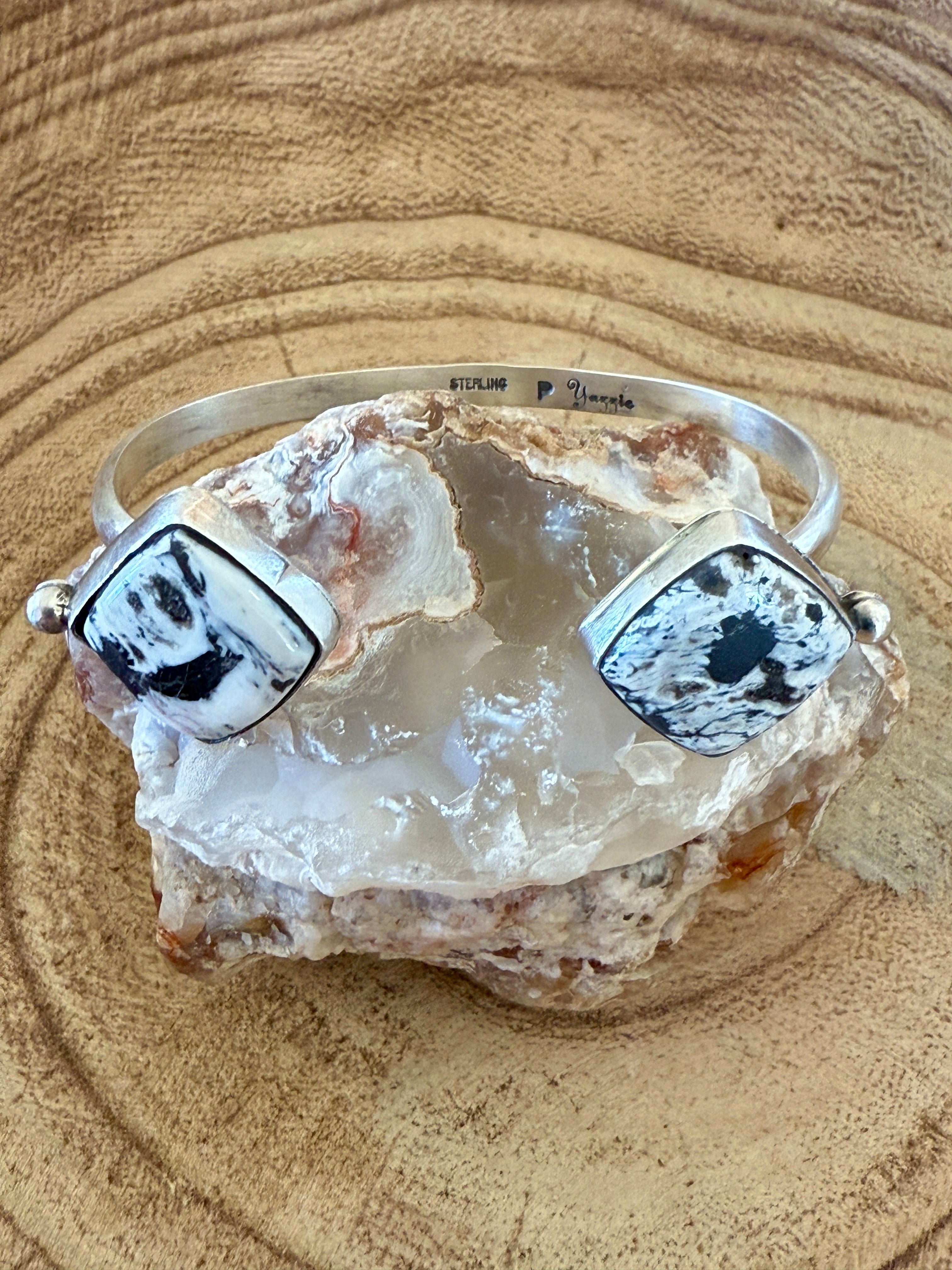 White Buffalo Adjustable 2 stone Cuffs by P. Yazzie