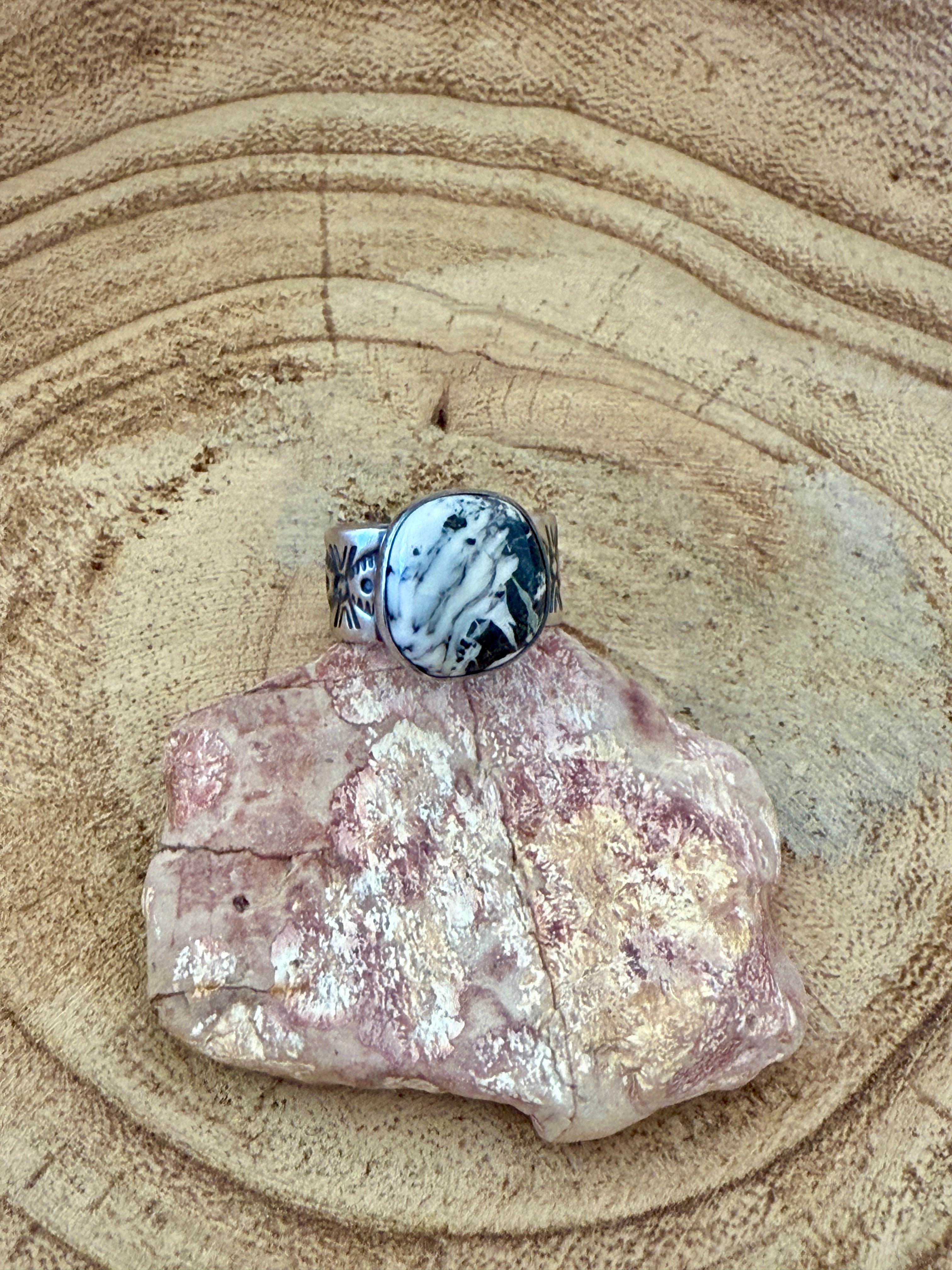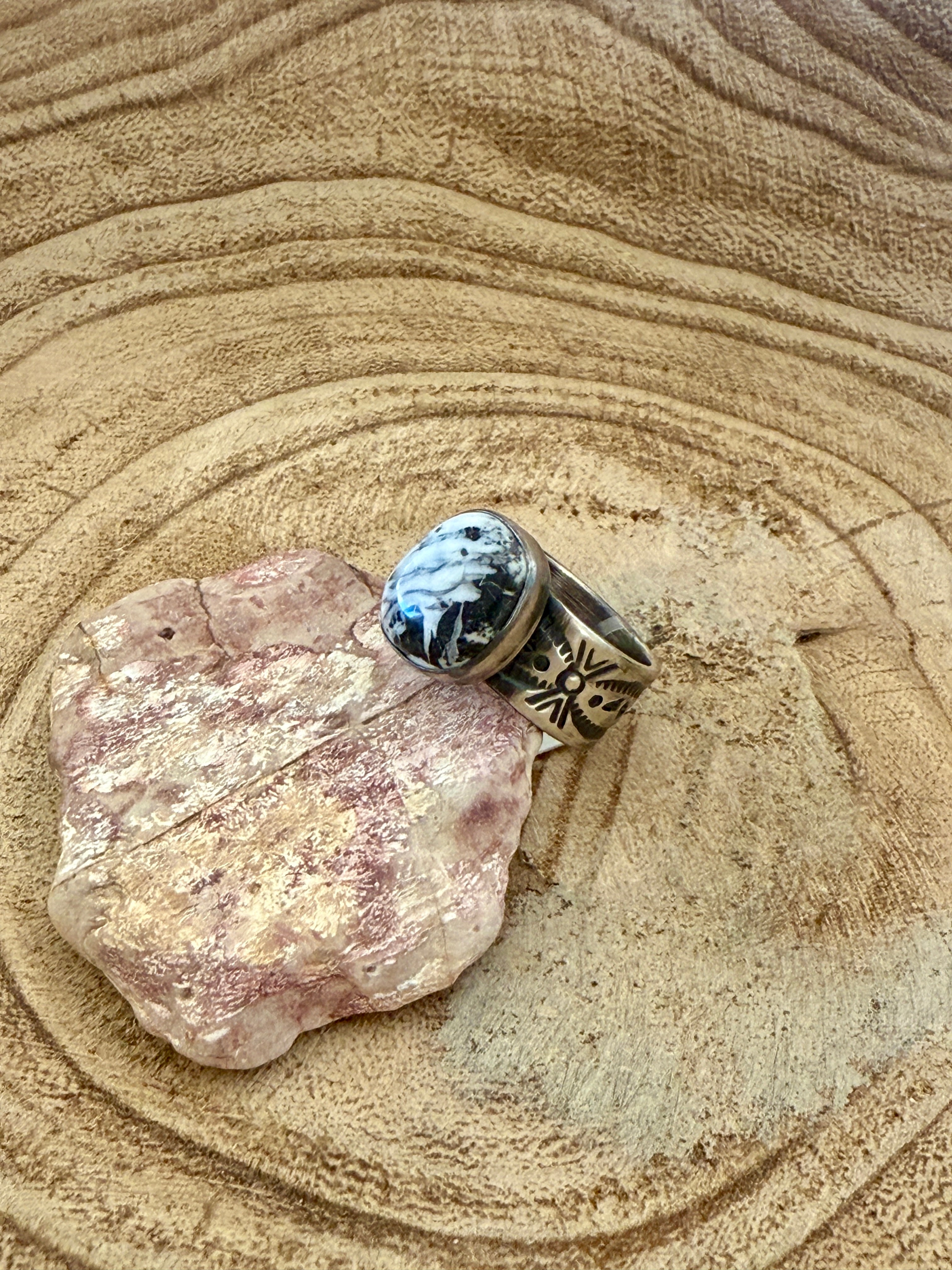 White Buffalo and Sterling Silver Adjustable Ring by Angela Martin