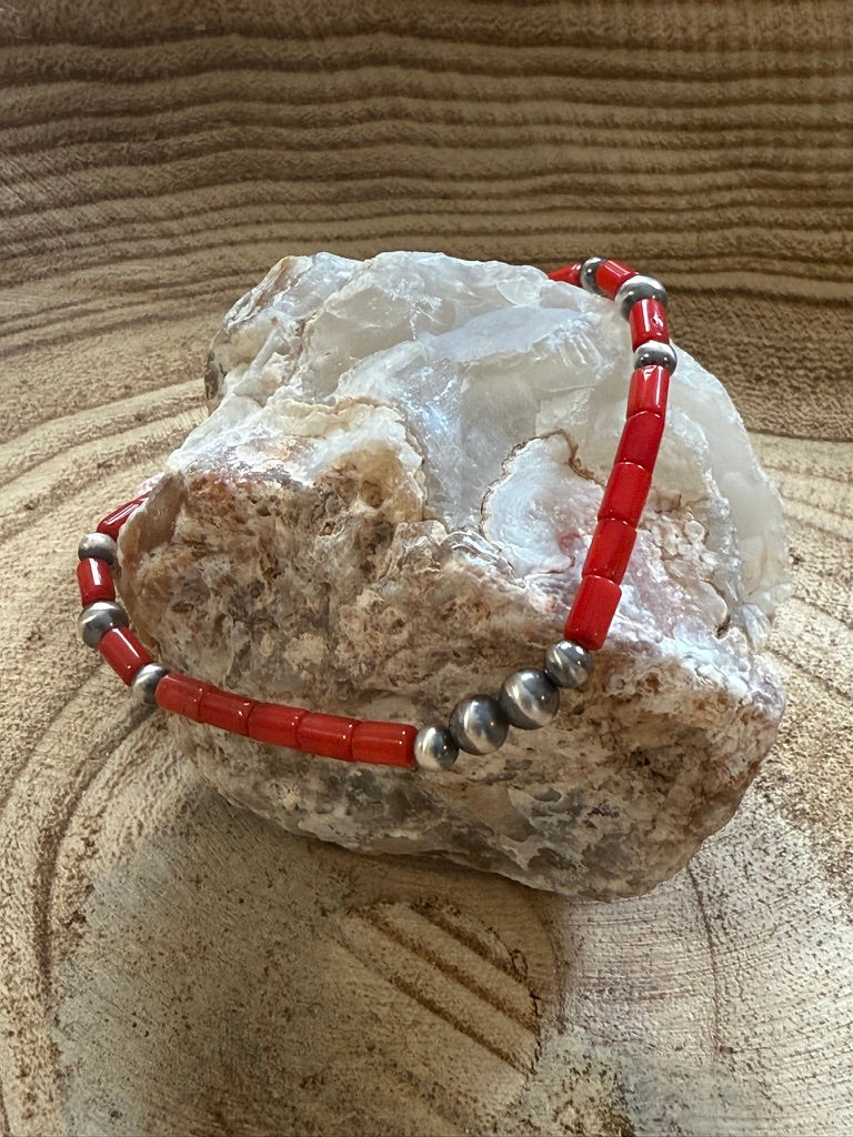 3 Strand Rondell and sterling silver pearl necklace by Rena Begay