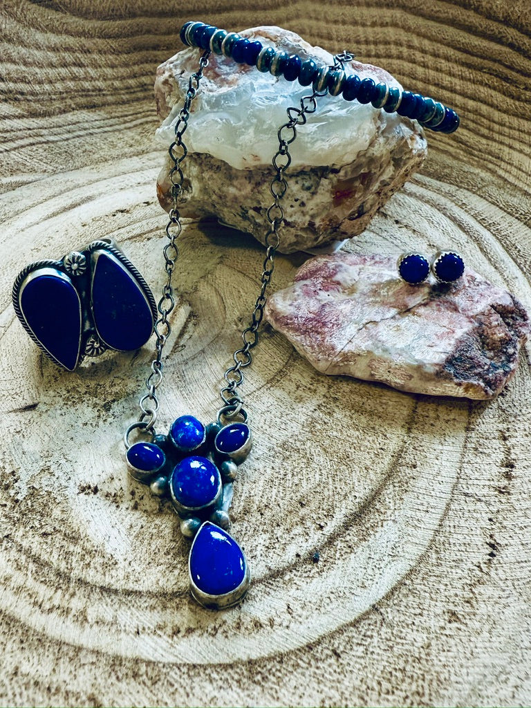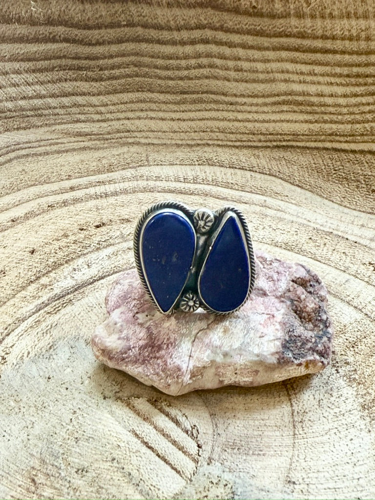 Blue Lapis 2 Stone Teardrop ring - Adjustable
