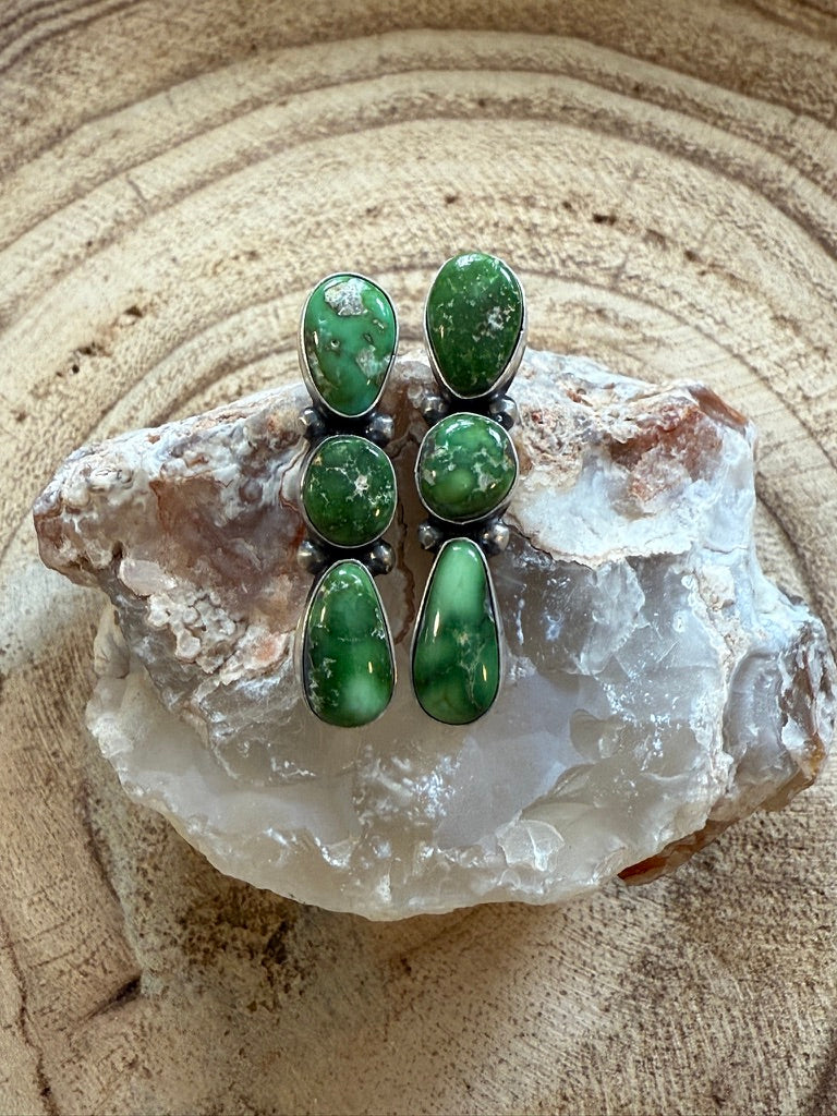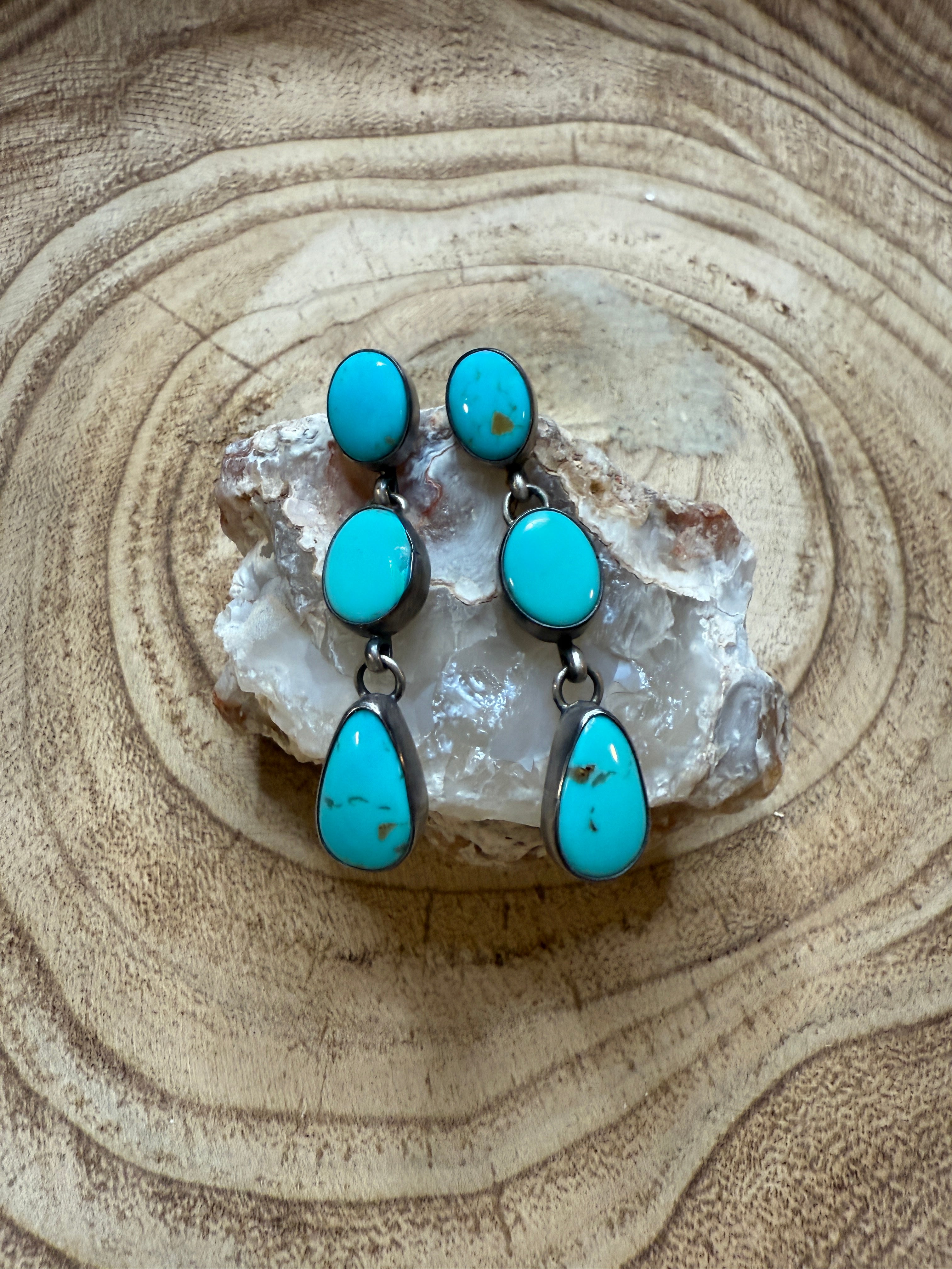 3 Stone Sonoran Gold Linear Drop Earrings by Donovan Skeets