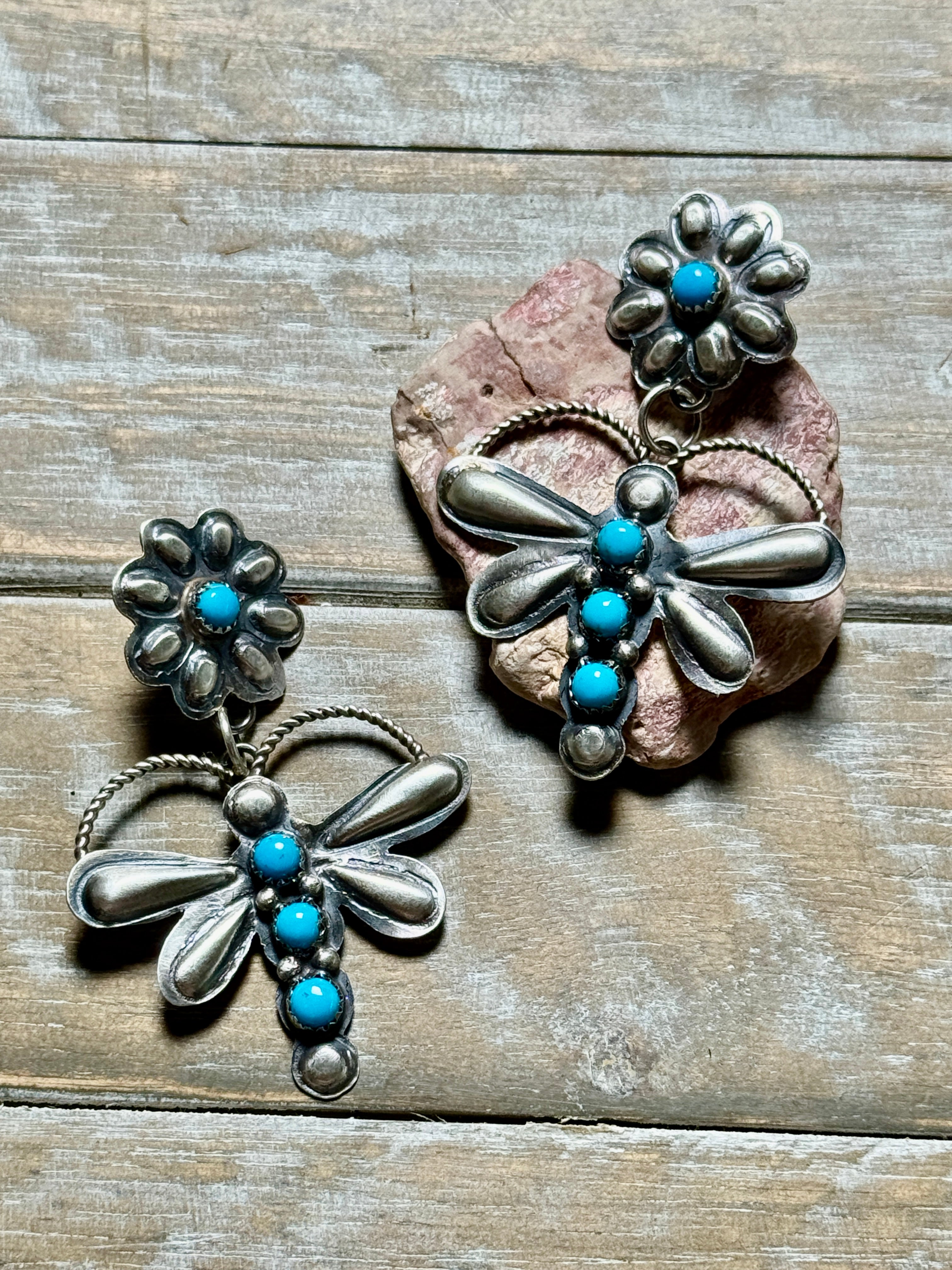 Dragon Fly Reposse Style Earrings with Kingman Turquoise by Gabriele Yazzie