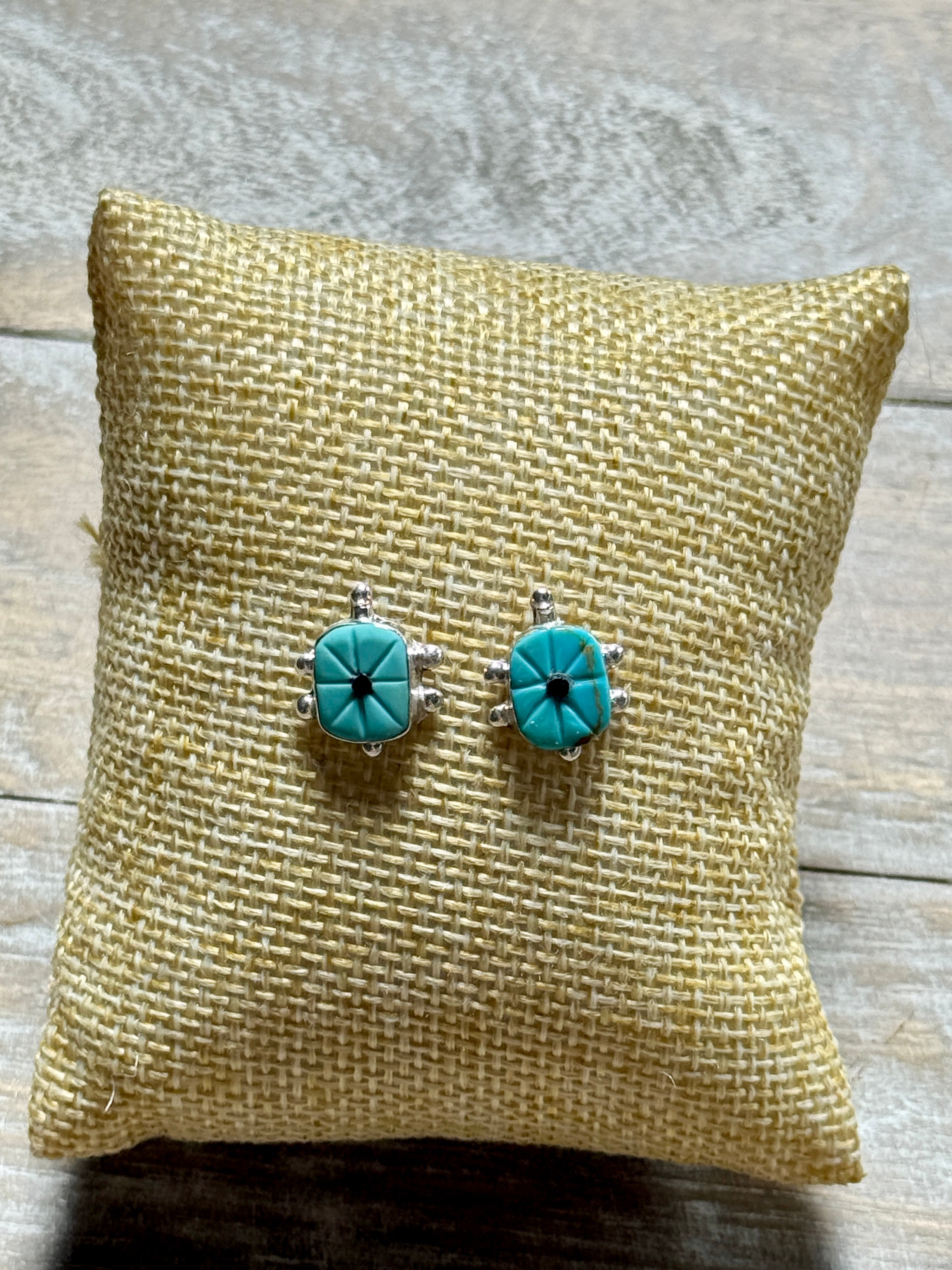Kingman Turquoise Turtle Earrings by Sarah Bowannie