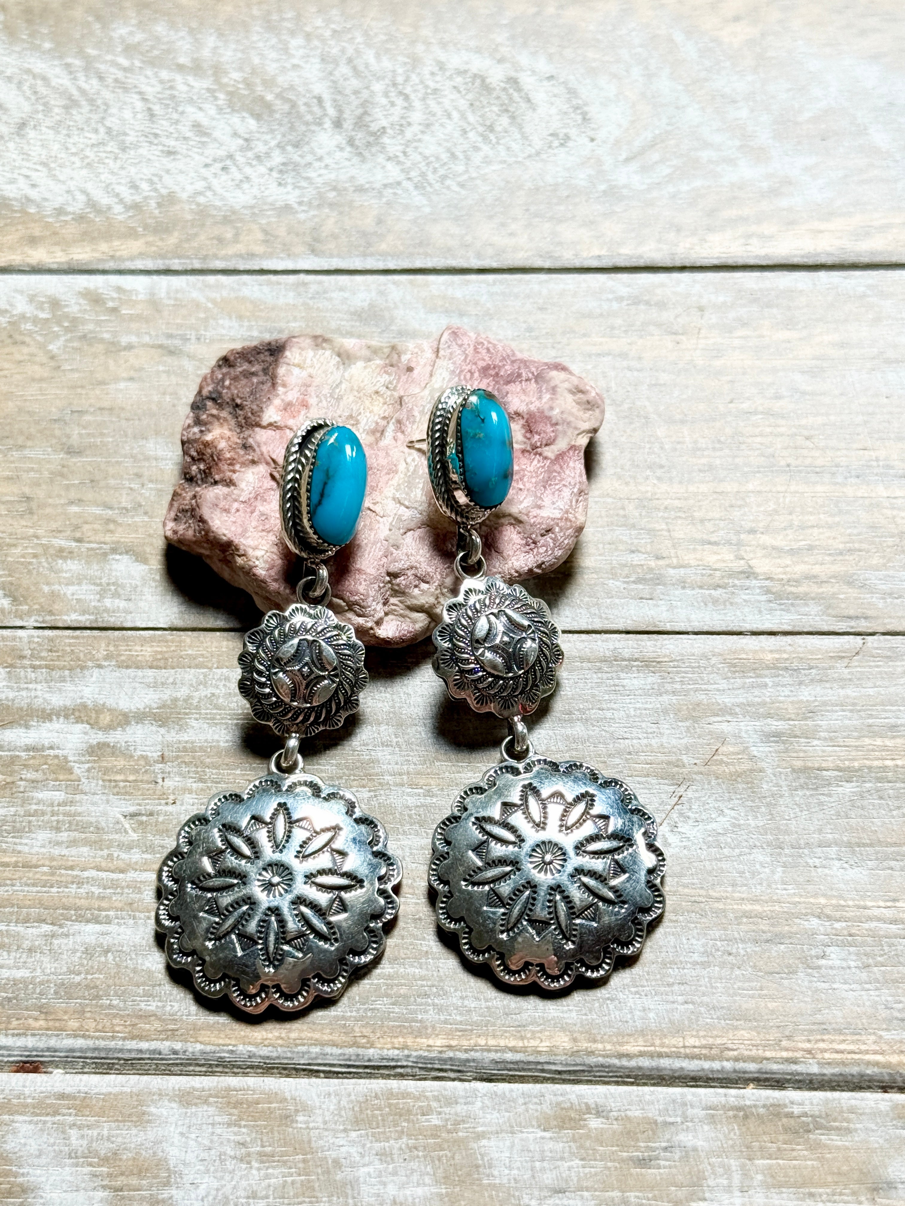 Emerson Delgarito Turquoise and Sterling Silver Concho Post Dangle earrings