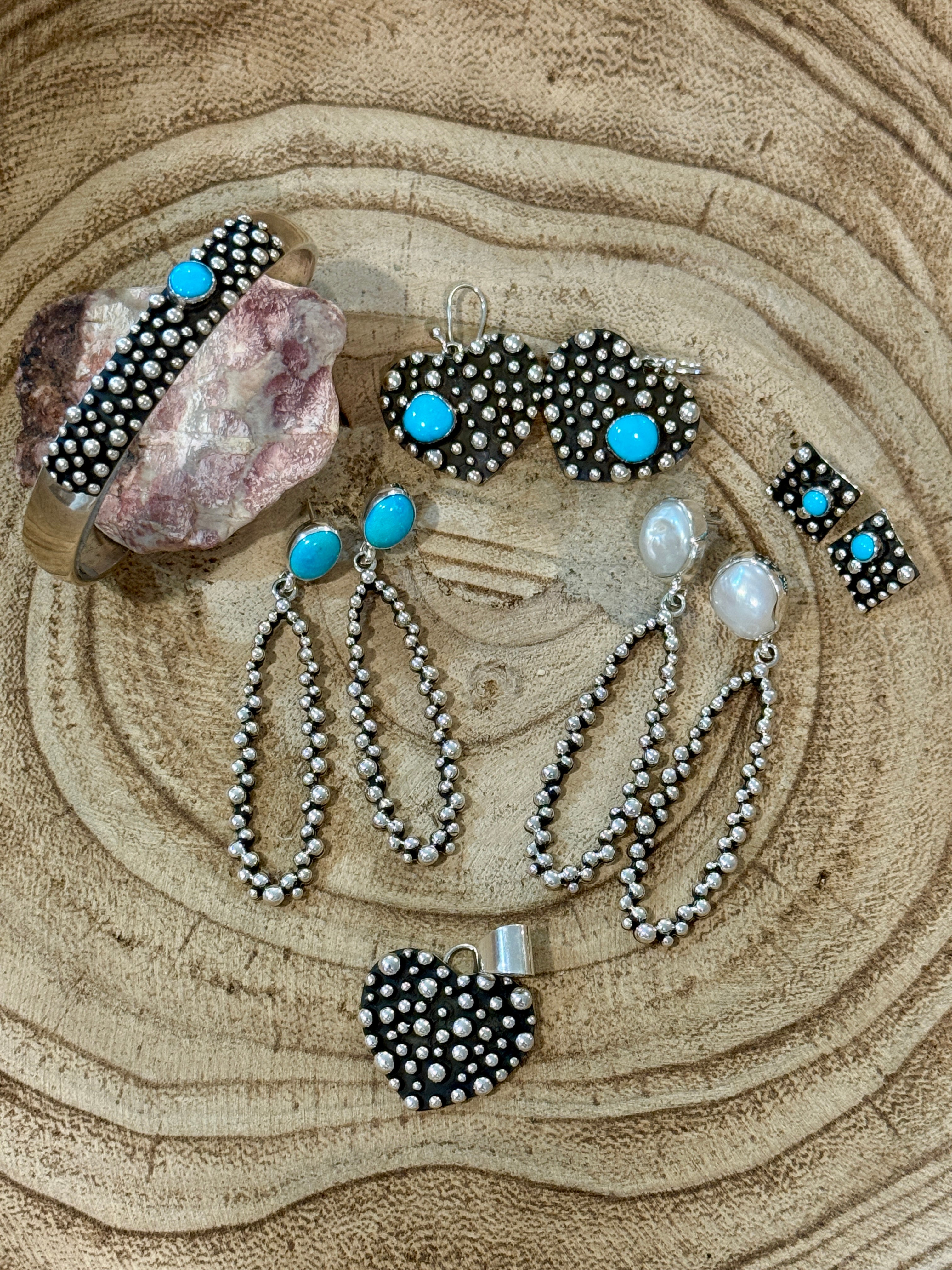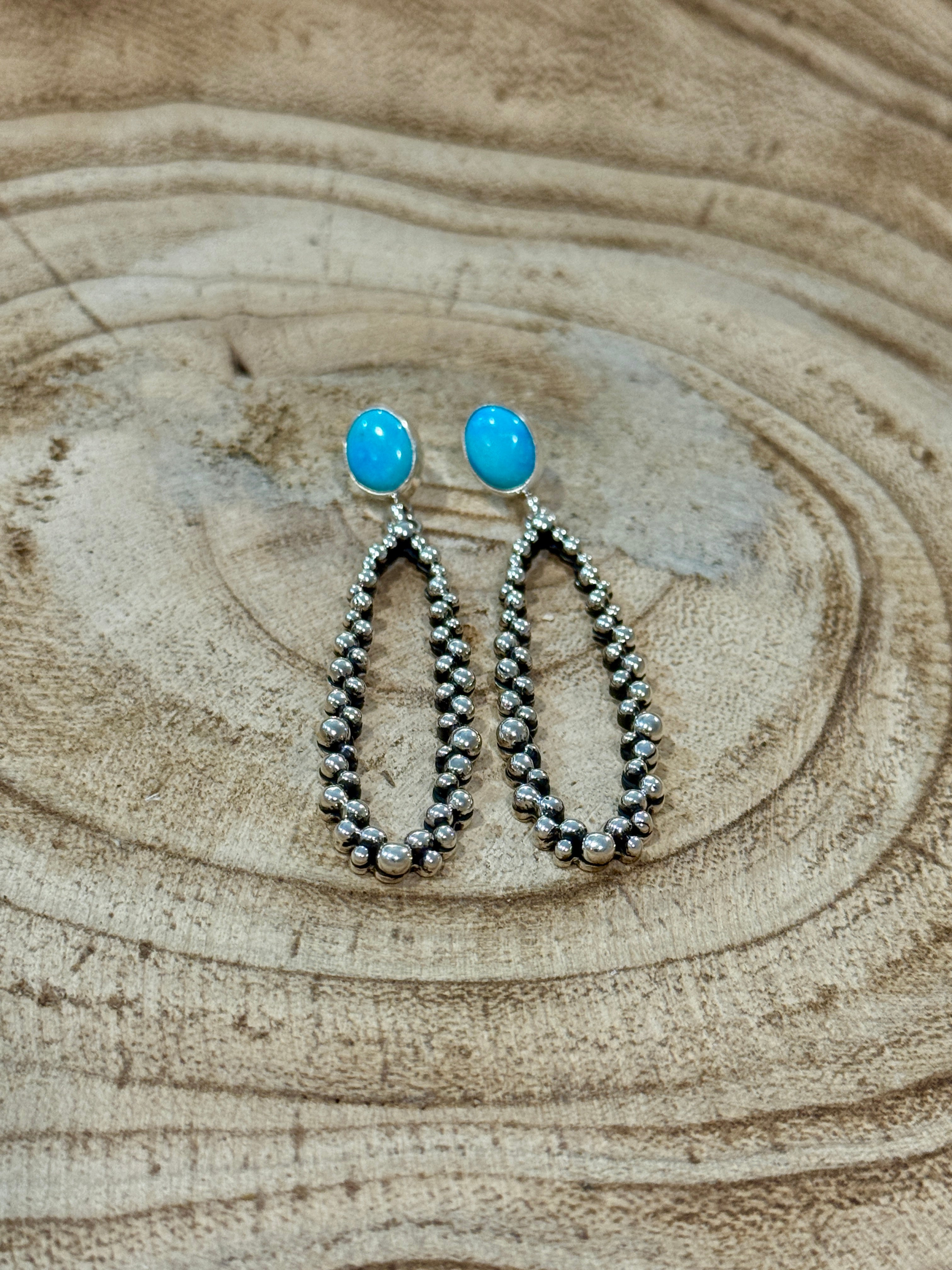 Turquoise Bead and Sterling Silver Blossom Dangle Earrings