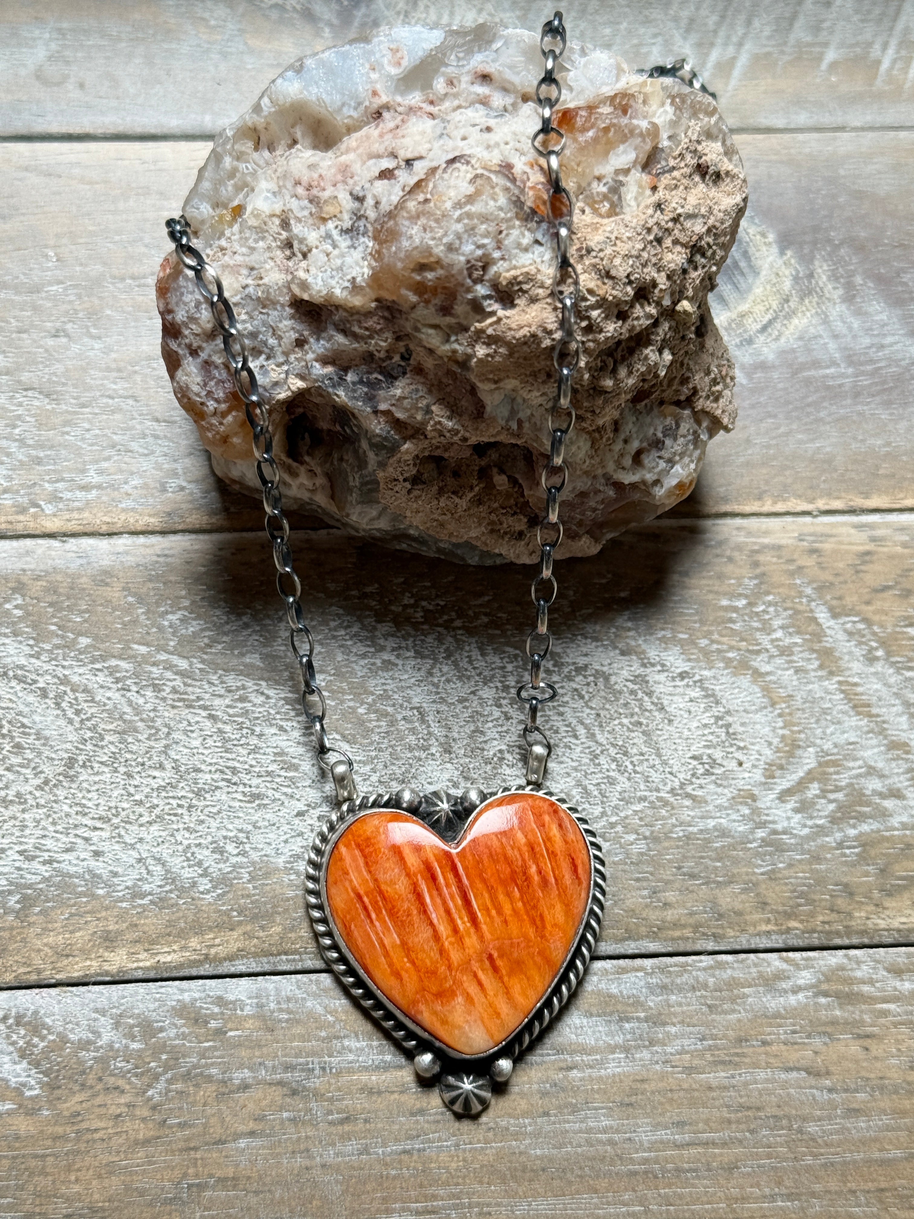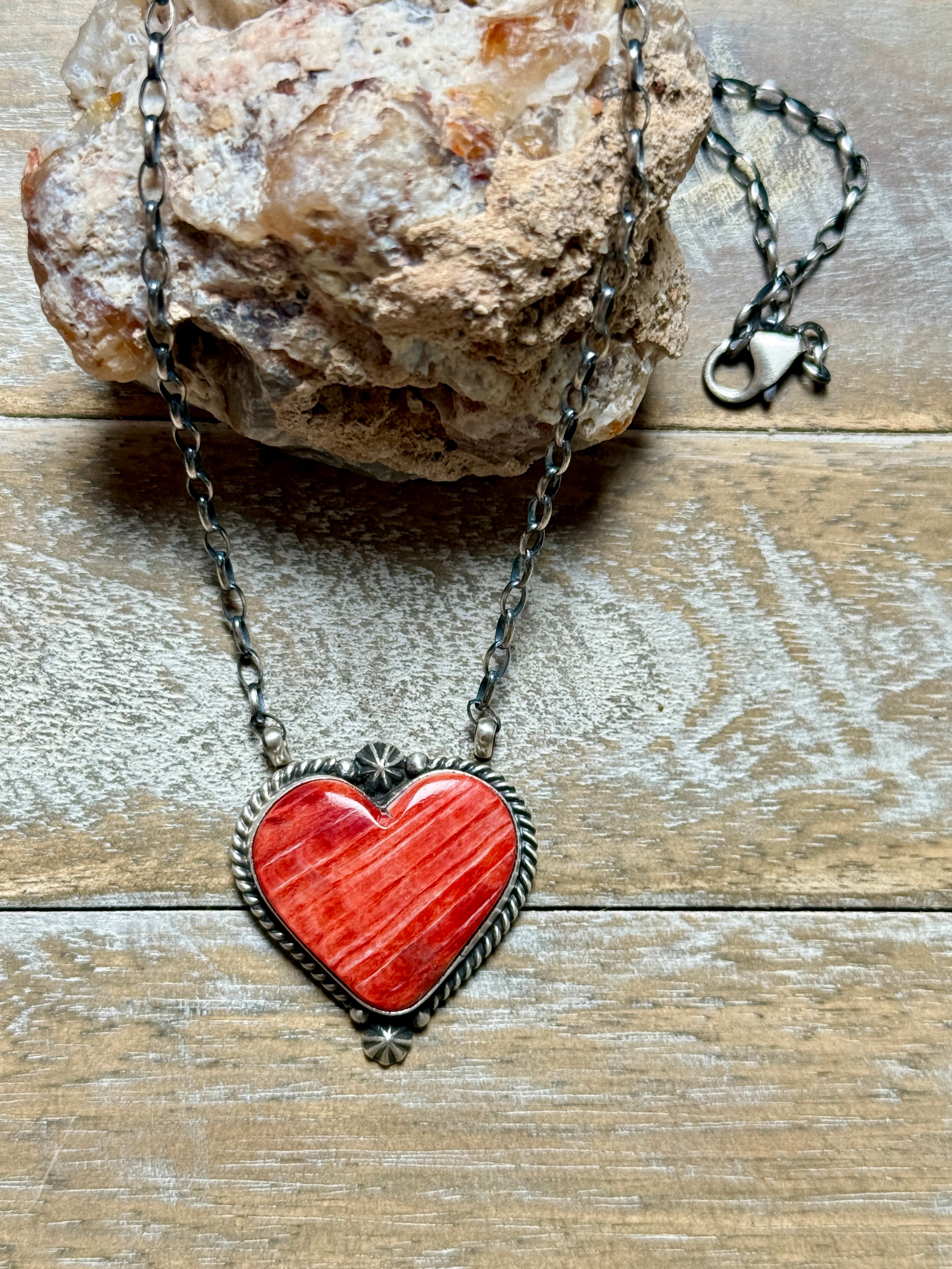 Orange Spiny Heart Necklace by