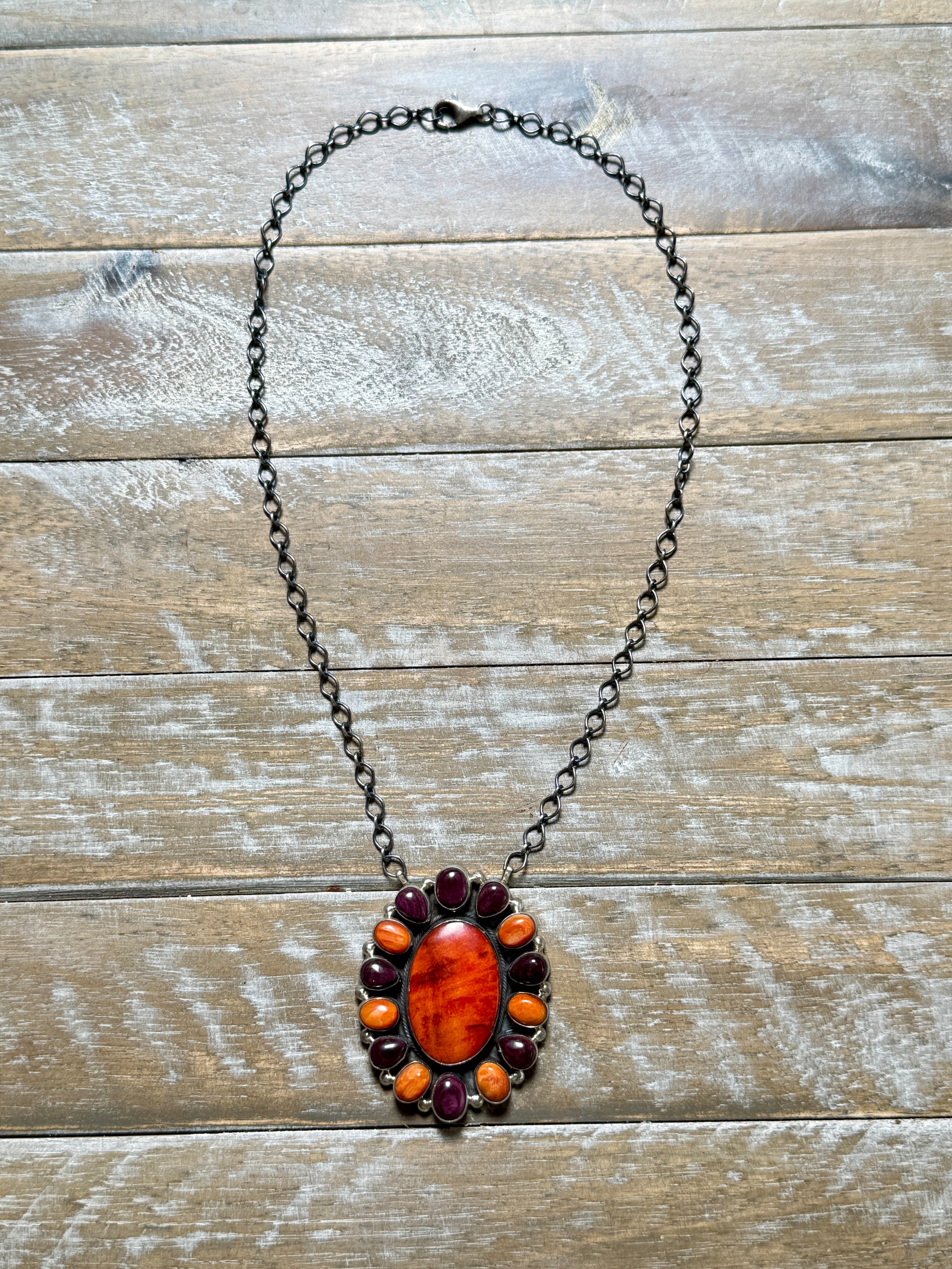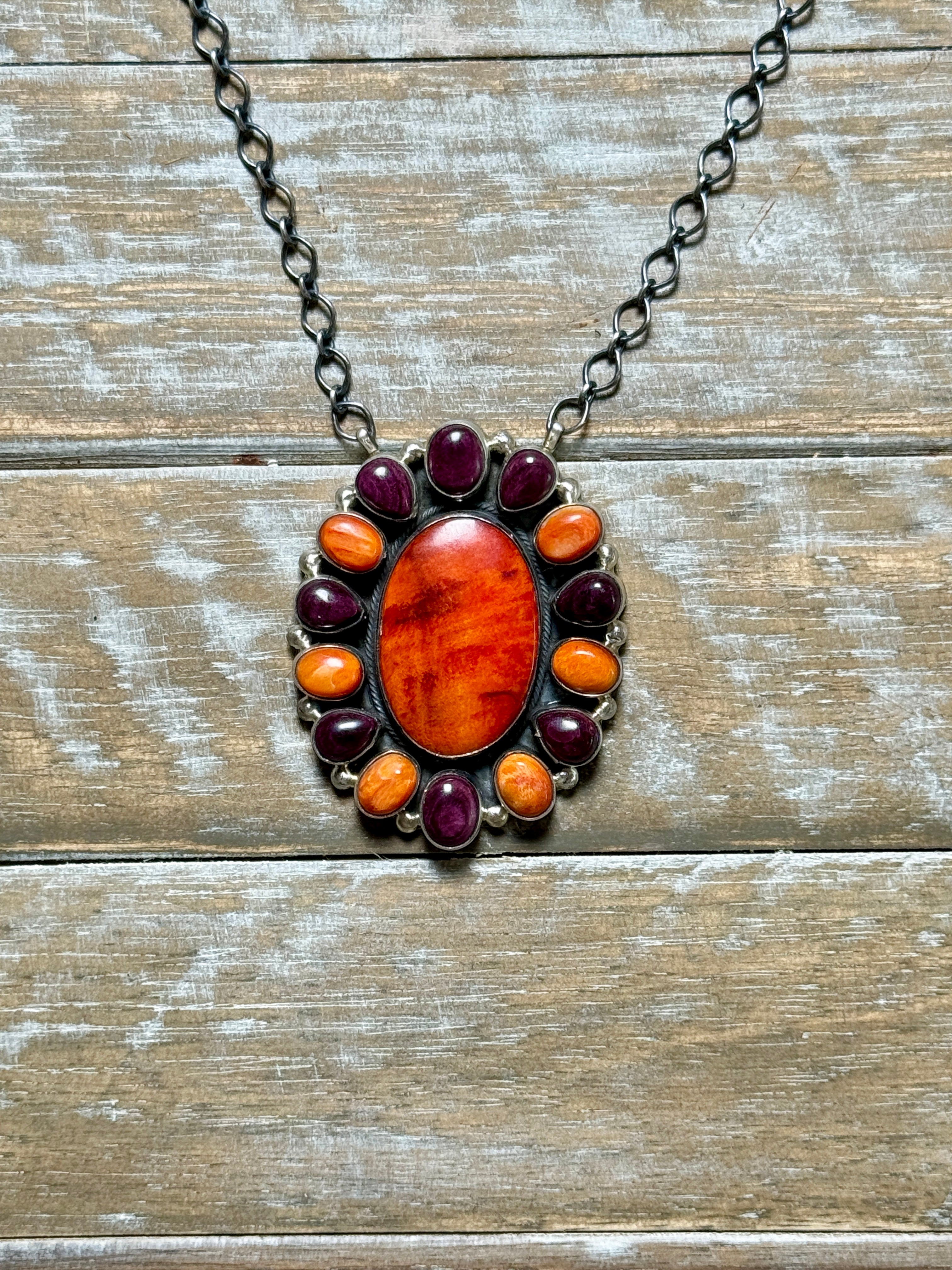 Orange and Purple Spiny Cluster Necklace by Antionette Martinez