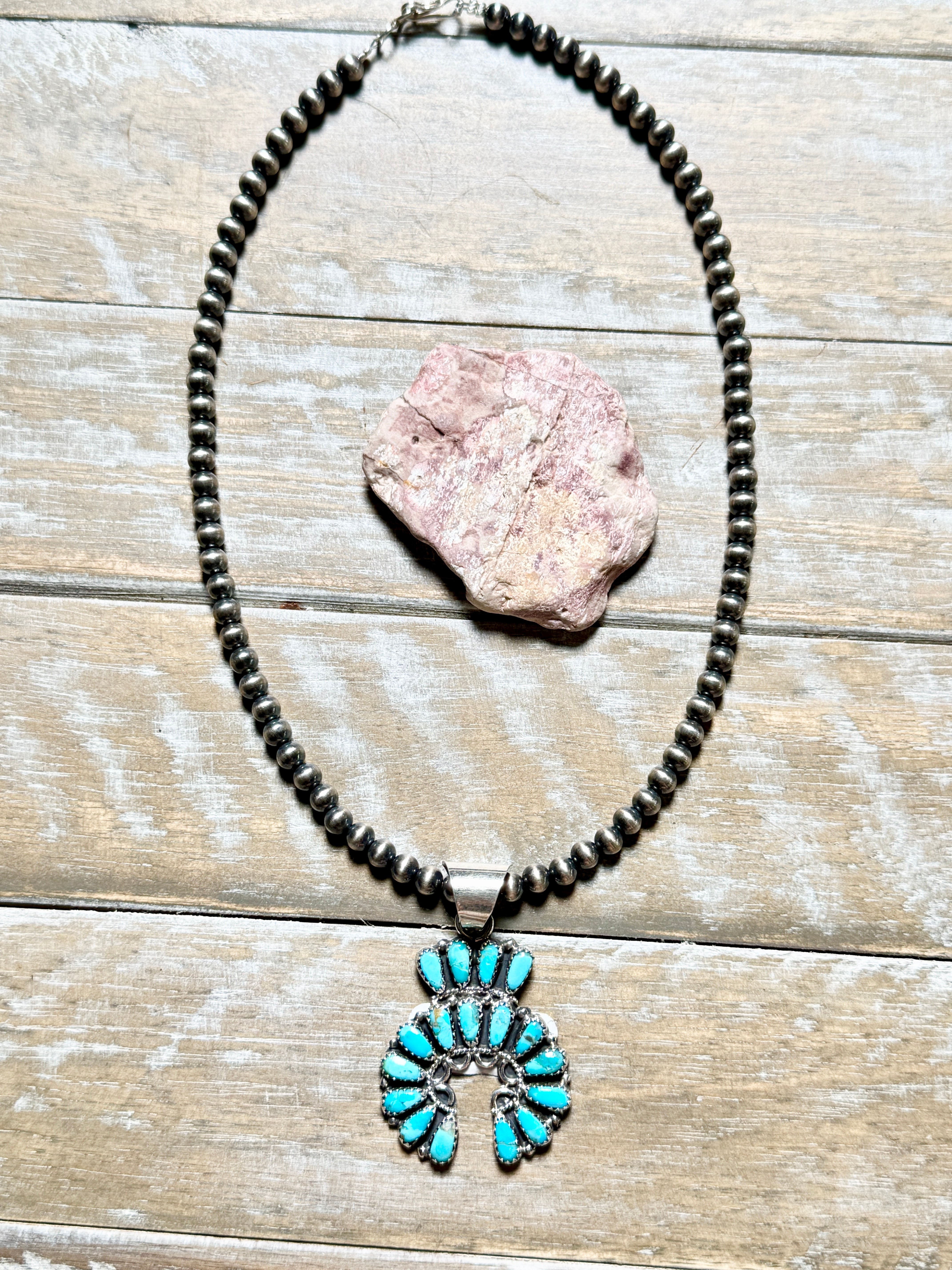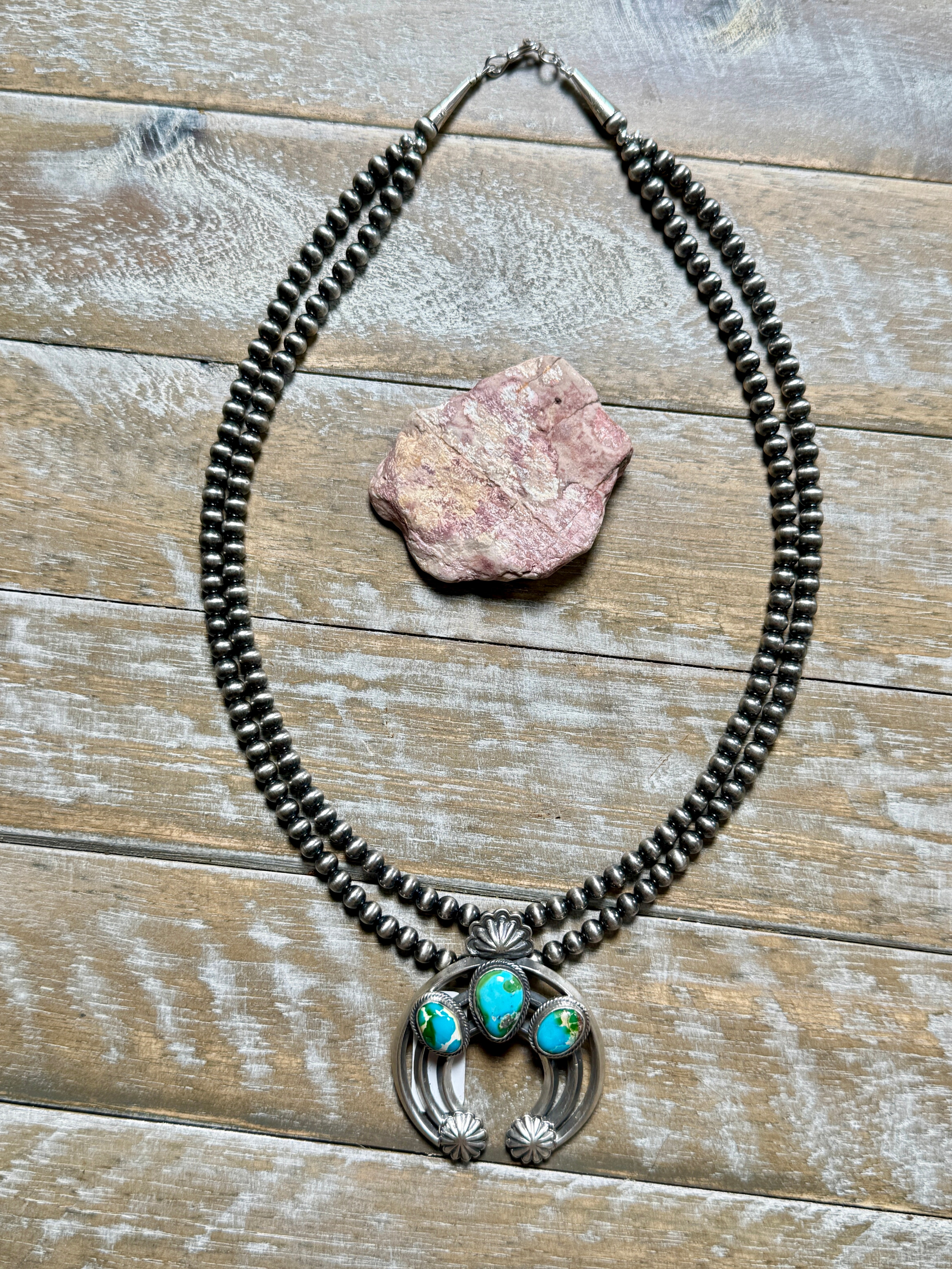 Kingman Naja Pendant with 5mm Sterling Silver Pearls by Zeita Begay