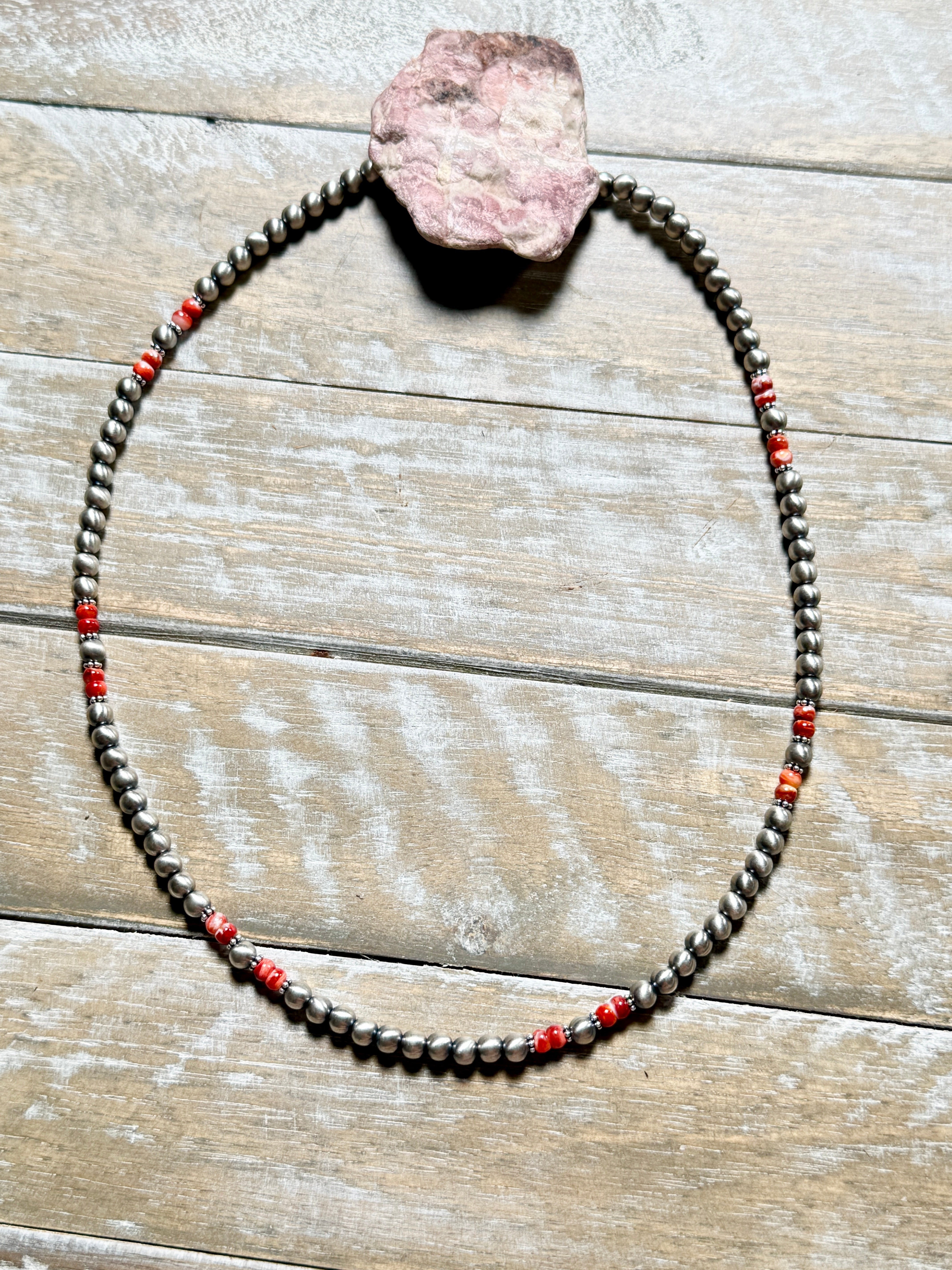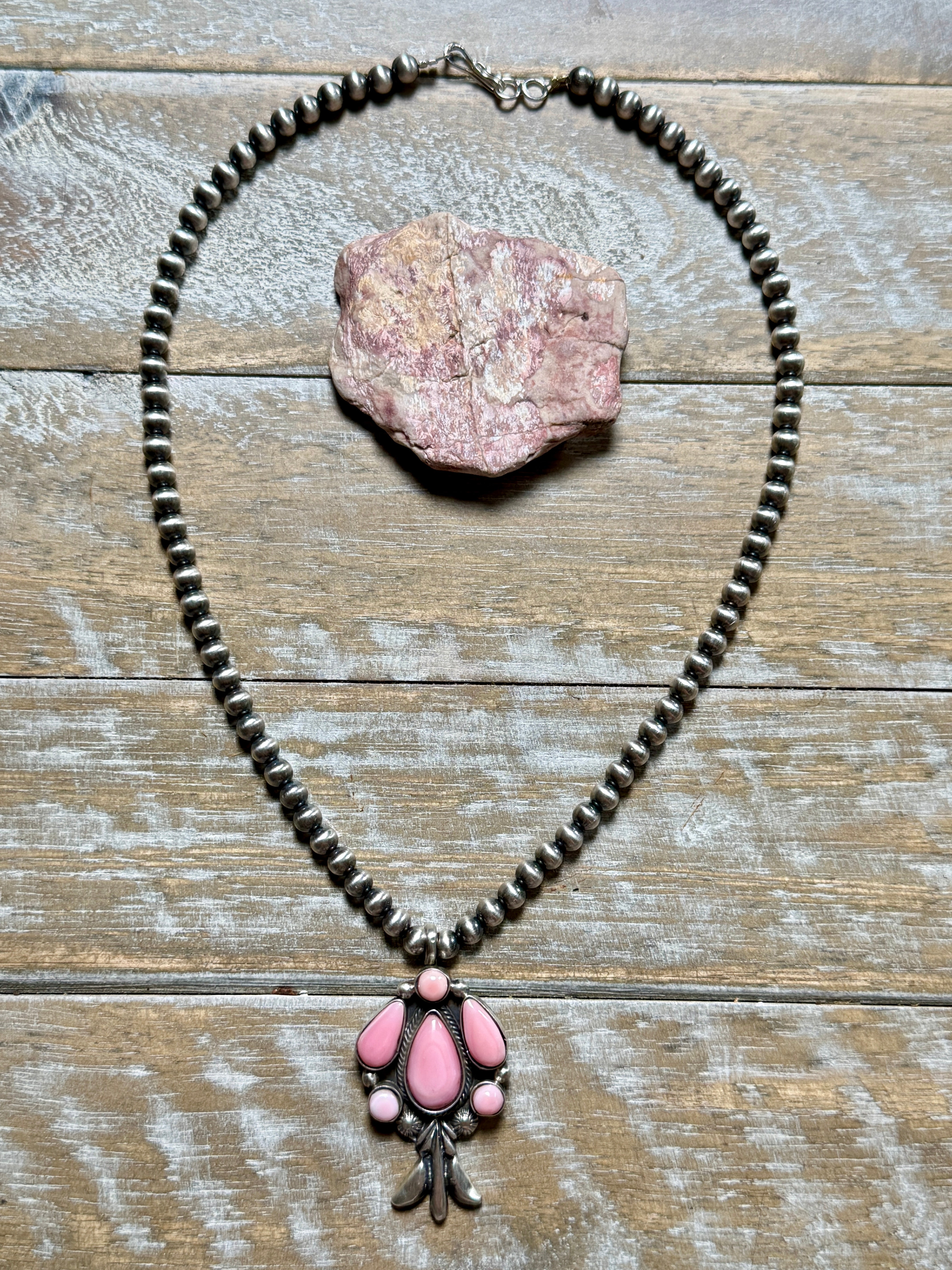 Pink Conch Fixed Pendant on 6MM Sterling Silver Beads by Bobby Platero