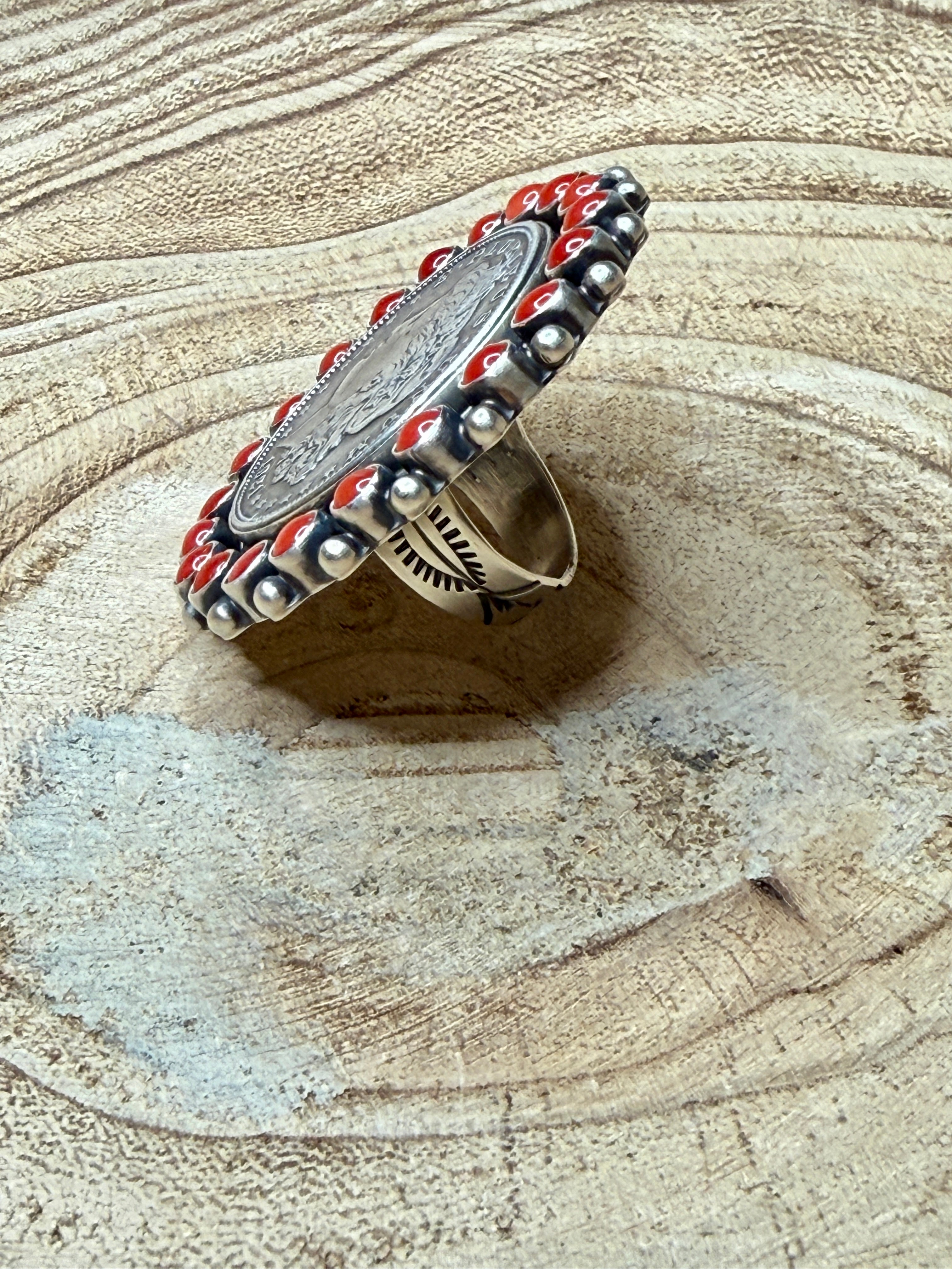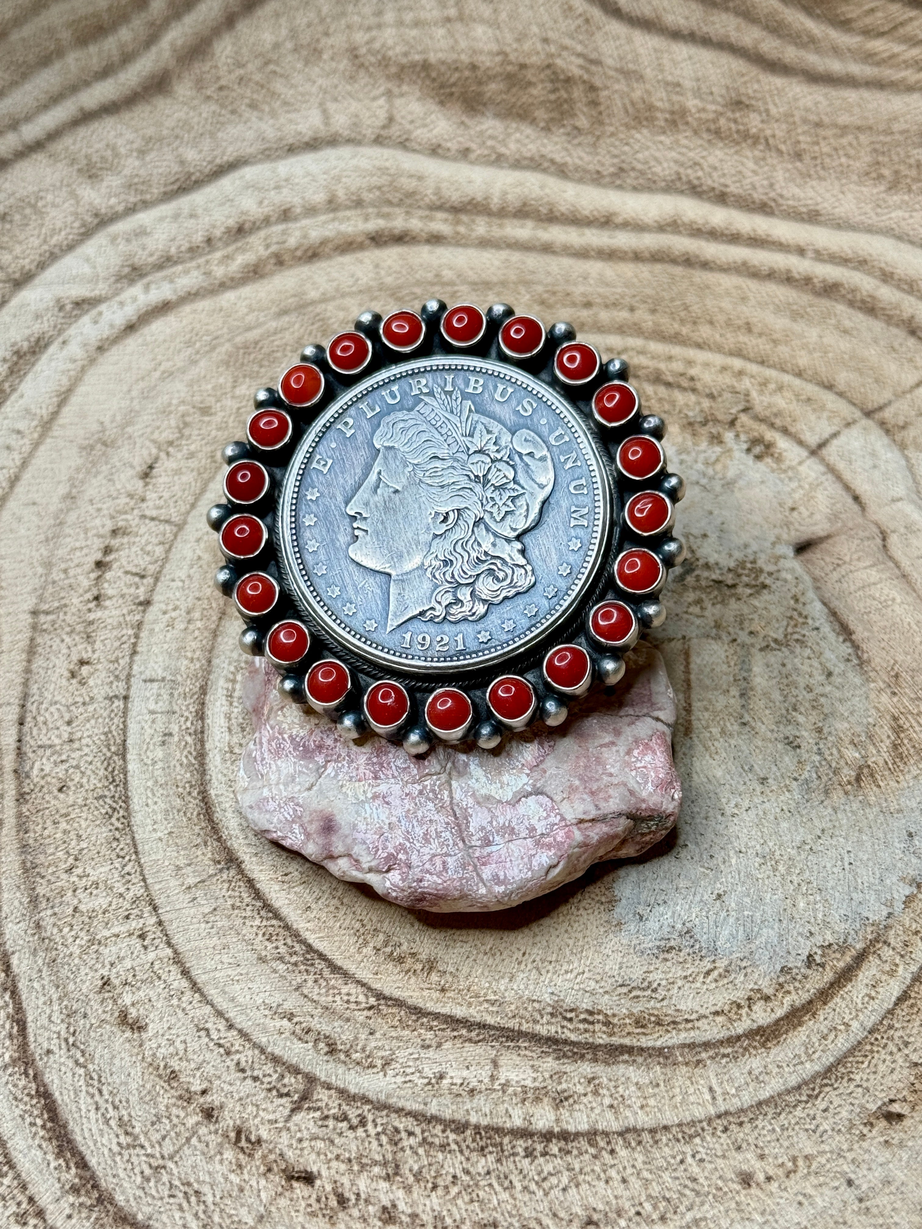 Liberty Dollar & Coral Statement Ring – Kathleen Livingston